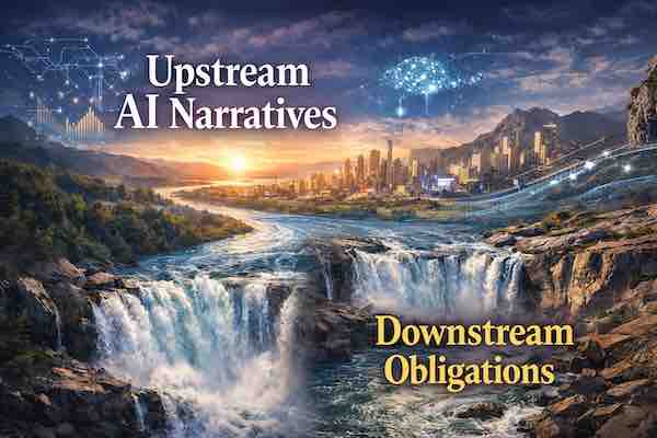 Upstream AI narratives, downstream obligations